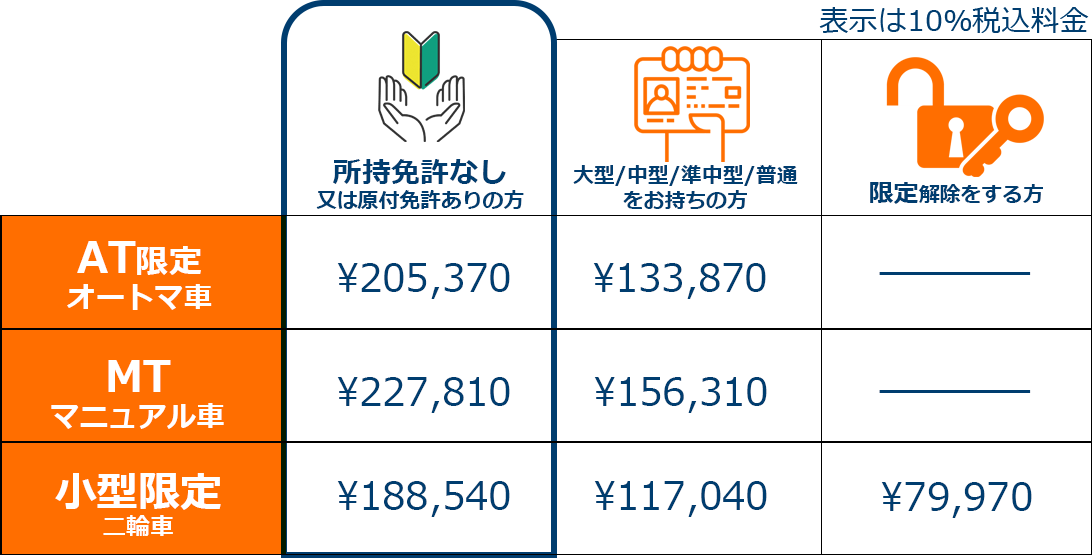 普通自動車免許 料金表