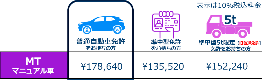 準中型自動車免許 料金表